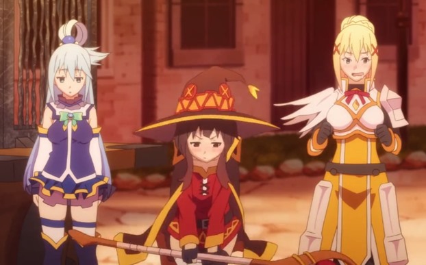 The song is called ‘Chīsana Bōken-sha’ and it is sung by the anime’s voice actresses Sora Amamiya (Aqua), Rie Takahashi (Megumin), and Ai Kayano (Darkness).