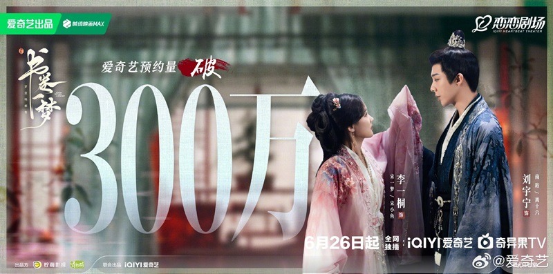 That news was announced earlier this morning via iQIYI’s Weibo account, along with a celebratory poster featuring the two main actors — Liu Yu Ning and Li Yi Tong.