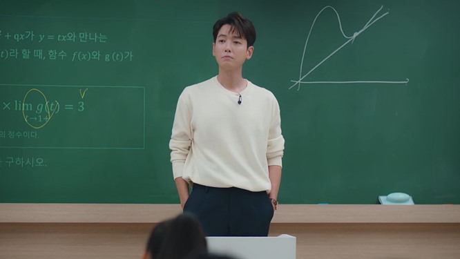 The celebrity math teacher is in a great mood because he was able to eat for the first time in a long time the night before, due to the food from Nam Haeng Seon’s banchan shop.