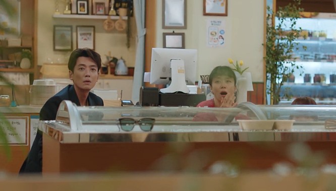 As in Episode 1, ‘Gypsophila‘ was heard as the drama’s ending theme song, right after Choi Chi Yeol and Nam Haeng Seon are arguing about the phone, which is interrupted by the metal ball flying through the banchan shop’s window.
