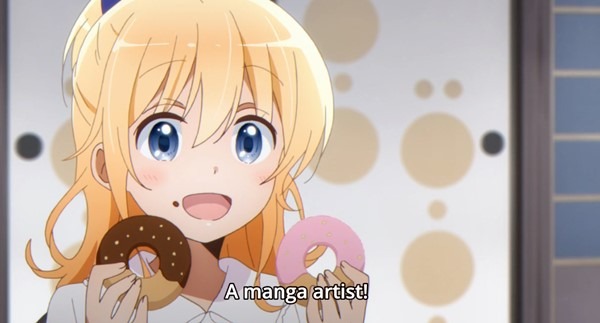 Luckily, her three housemates are happy to help her work on her art, and to encourage her in her quest to get her first anime series accepted and published.