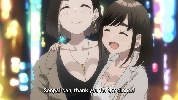 Soon it’s time to move to another place and drink some more but, as all four are walking down the street and Kouhai-chan and the senpai are getting along well and talking about where to go next, Douki-chan feels a hand on her arm and she is unceremoniously dragged into an alley by Douki-kun.