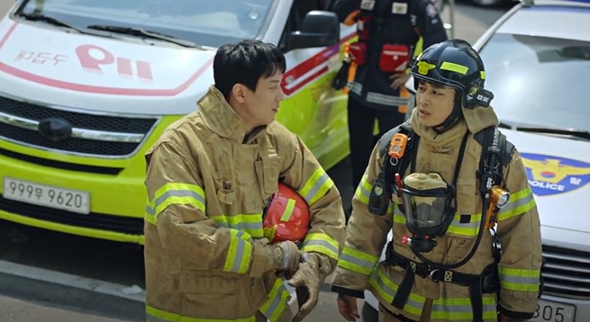 Especially as all three leads are interesting to watch — detective Jin Ho Gae, who is such a hothead he punches first and asks questions later, paramedic Song Seol who, while caring deeply about the people she treats will also berate her colleagues mercilessly if she feels they are doing their jobs poorly, and Bong Do Jin, a firefighter who, at the moment at least, follows the rules but is also swayed by Jin Ho Gae and his outlandish ideas.