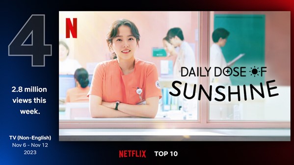 The most-watched Korean TV series on Netflix for the period of November 6th to November 12th is the recently released Daily Dose of Sunshine.