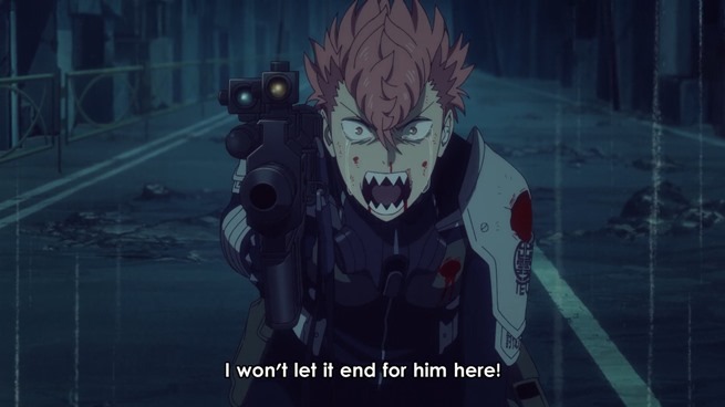Initially fleeing, Iharu remembers Hoshina’s words about surpassing one’s combat power. He decides to return and help Reno, as he no longer wants to be a bystander who needs to be helped, but a hero.