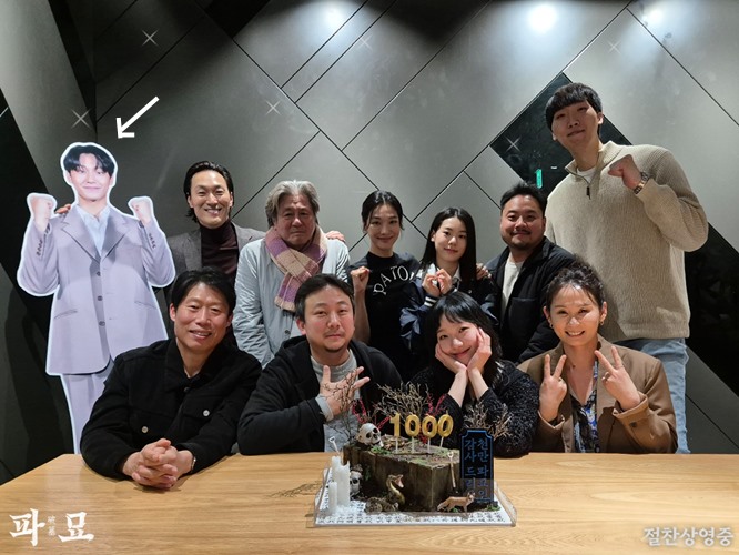 Publicity for Exhuma at the time also included the rest of the cast, plus a cardboard cutout of Lee Do Hyun, as he couldn’t appear for those either.
