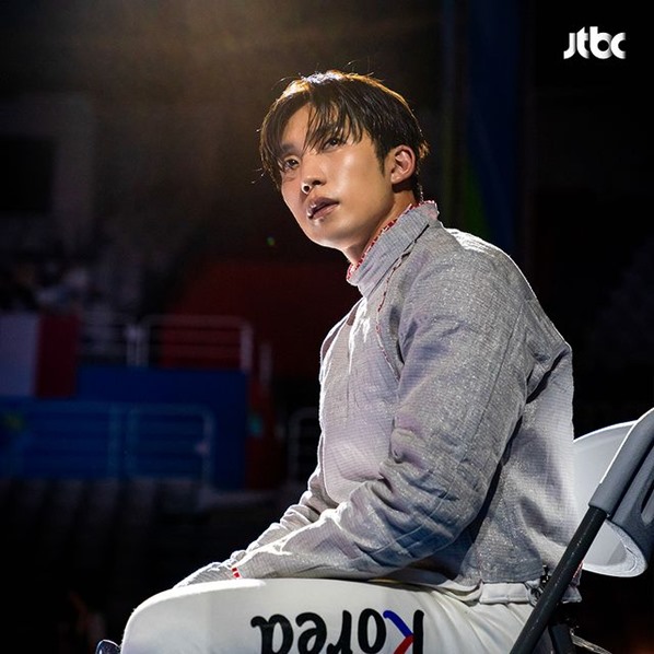 The new Lee Sang Yi photos introduce the 32-year-old actor playing Kim Jong Hyeon, an Olympic gold medalist fencer who is fighting in the men’s saber final at the Olympic Games.