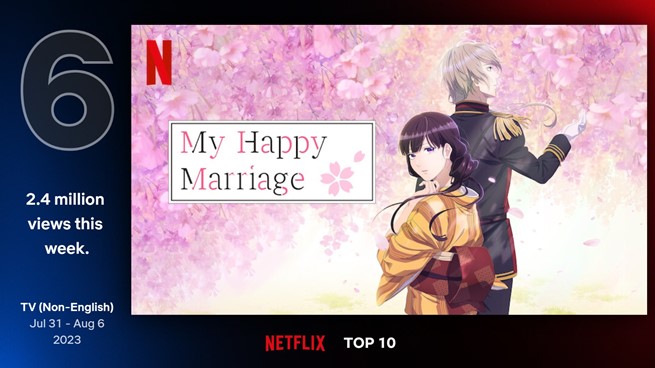 And an anime, apparently, that is just as loved around the world as much as I love it as, according to Netflix’ latest numbers just released, My Happy Marriage was the sixth most-watched non-English TV series on their platform between July 31st and August 6th.