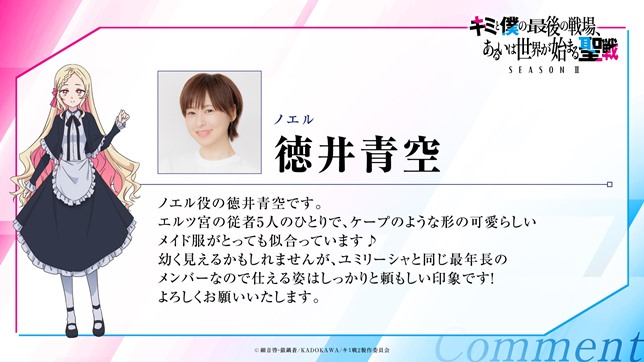 Sora Tokui (Mikohime in A Journey Through Another World: Raising Kids While Adventuring) who is playing Noel
