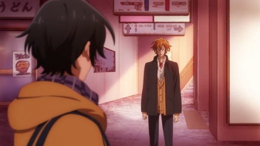Hanzawa then warns him same-sex relationships can be difficult as people say things they wouldn’t say if it was a relationship between a man and a woman. He tells Miyano he knows this because one of his family members is gay (it’s his brother, but he doesn’t tell Miyano that), and he has seen the difficulties first hand.