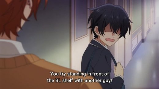 When Miyano admits he is, Sasaki decides to go with him, only to be shouted at by Miyano “You try standing in front of the BL shelf with another guy!”