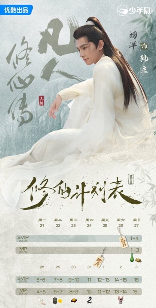 Release schedule featuring Yang Yang as Han Li