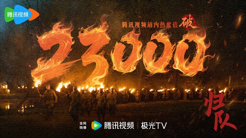 The ongoing Chinese war-themed drama The Long Way Back has exceeded 24000 on Tencent Video’s heat index, just two days after it climbed to 21000 on the index a few hours after it premiered on August 25th.