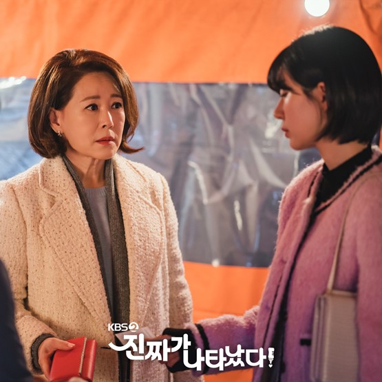 The Real Has Come, Episode 3 stills feature Oh Yeon Doo (superbly played by Baek Jin Hee) in an outdoor drinking tent along with Gong Tae Kyung’s mother Lee In Ok (Cha Hwa Yeon).